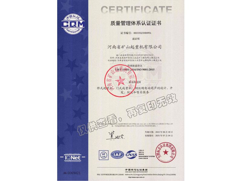質(zhì)量管理體系認(rèn)證證書(shū)