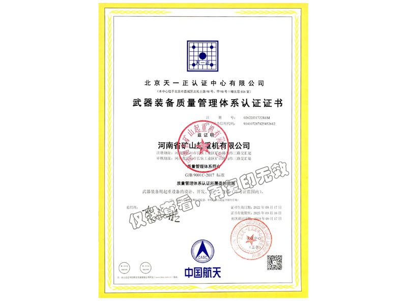 武器裝備質(zhì)量管理體系認(rèn)證證書(shū)
