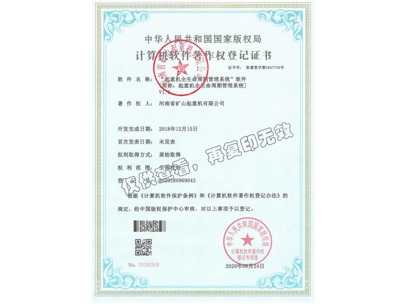 計(jì)算機(jī)軟件著作權(quán)登記證書