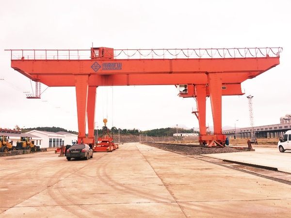 本起重機(jī)專(zhuān)用于鐵路貨場(chǎng)裝卸、堆放20、40及45英尺國(guó)際標(biāo)準(zhǔn)集裝箱。本機(jī)配備伸縮式集裝箱吊具,用于吊運(yùn)不同規(guī)格集裝箱。吊具的開(kāi)閉鎖動(dòng)作和伸縮由司機(jī)在操縱室操作。同時(shí),為了適應(yīng)不同的集裝箱堆放方向和集裝箱拖車(chē)行走方向,集裝箱吊具可設(shè)計(jì)有旋轉(zhuǎn)機(jī)構(gòu),可使集裝箱任意旋轉(zhuǎn),以提高裝卸效率。